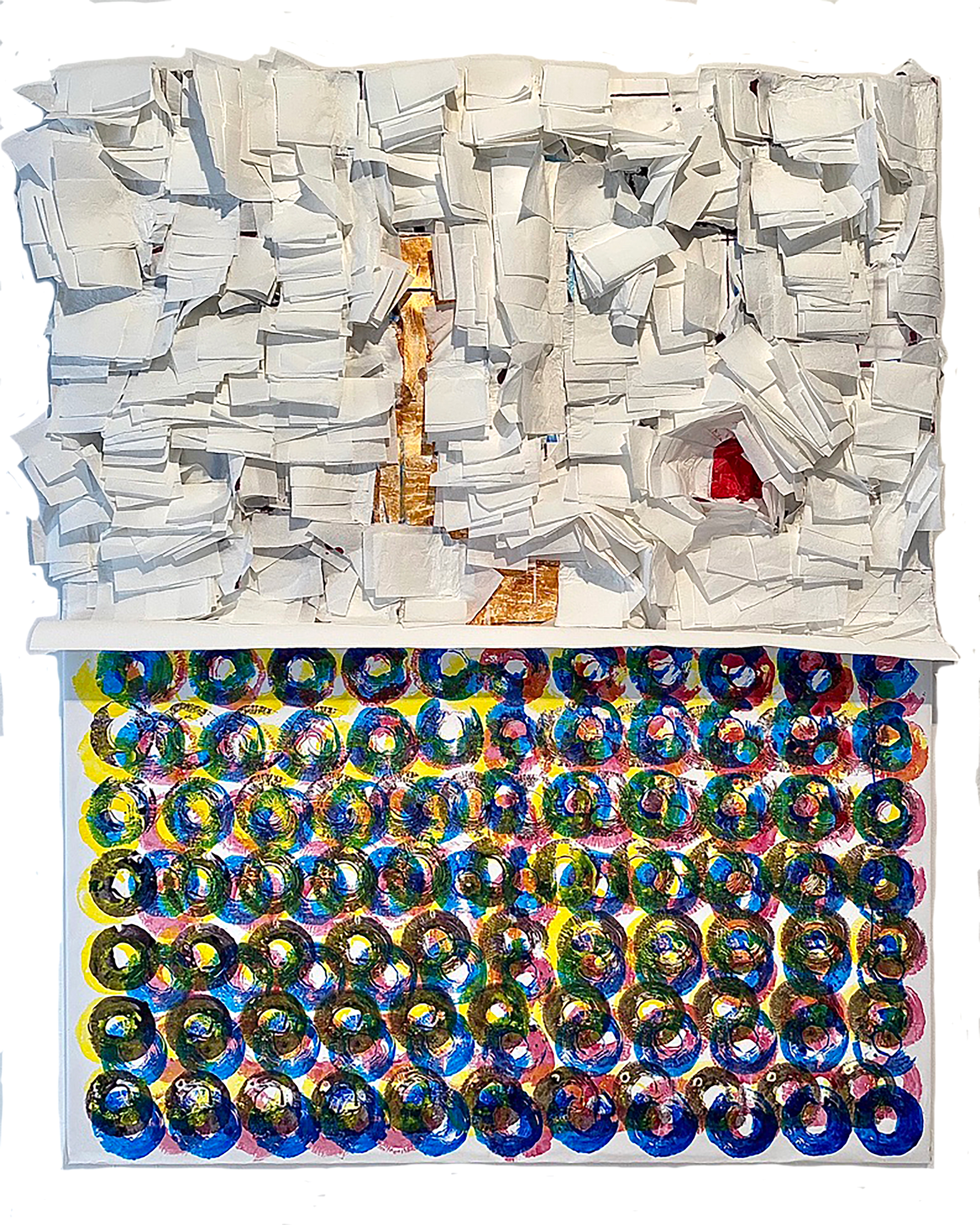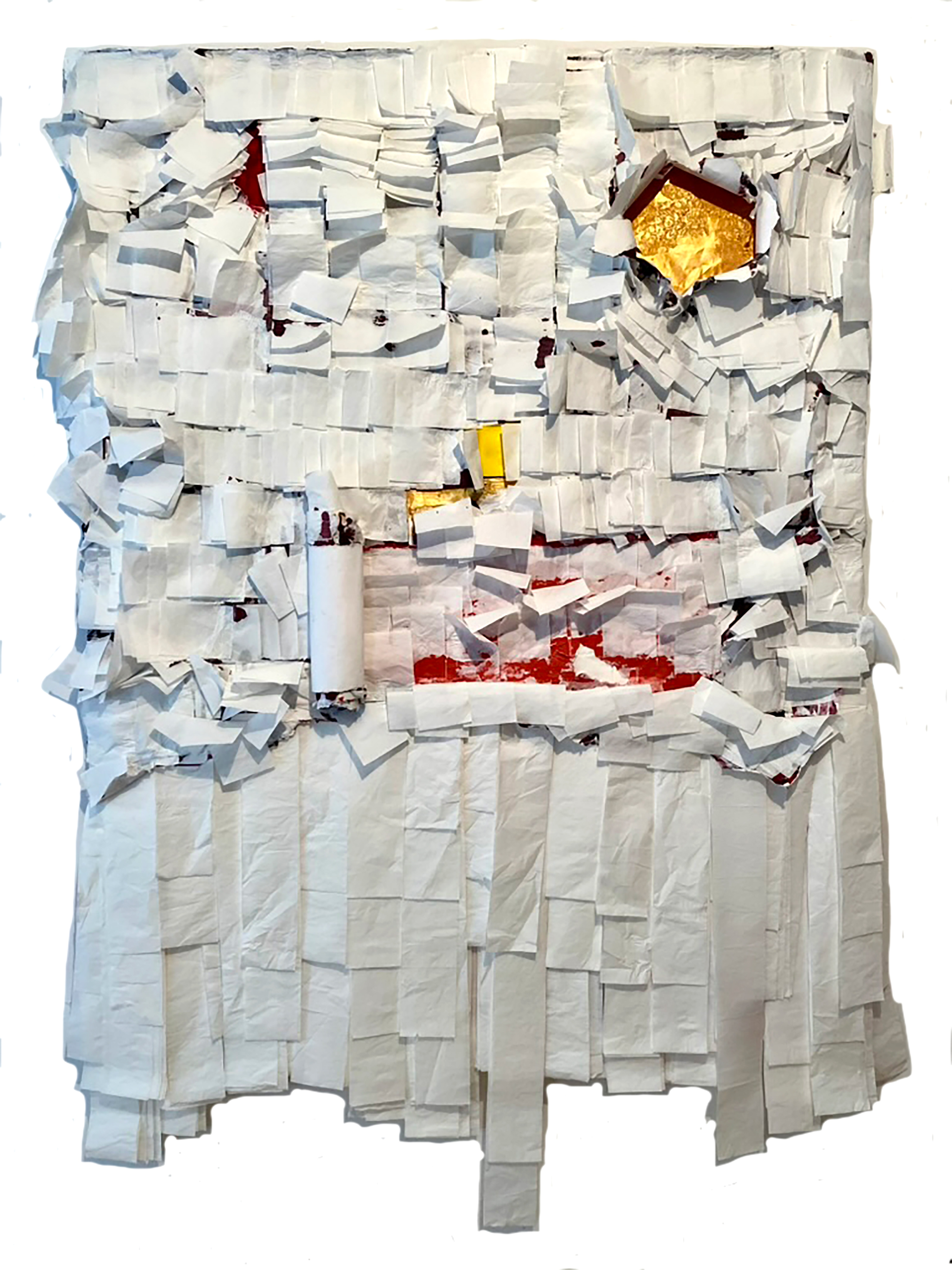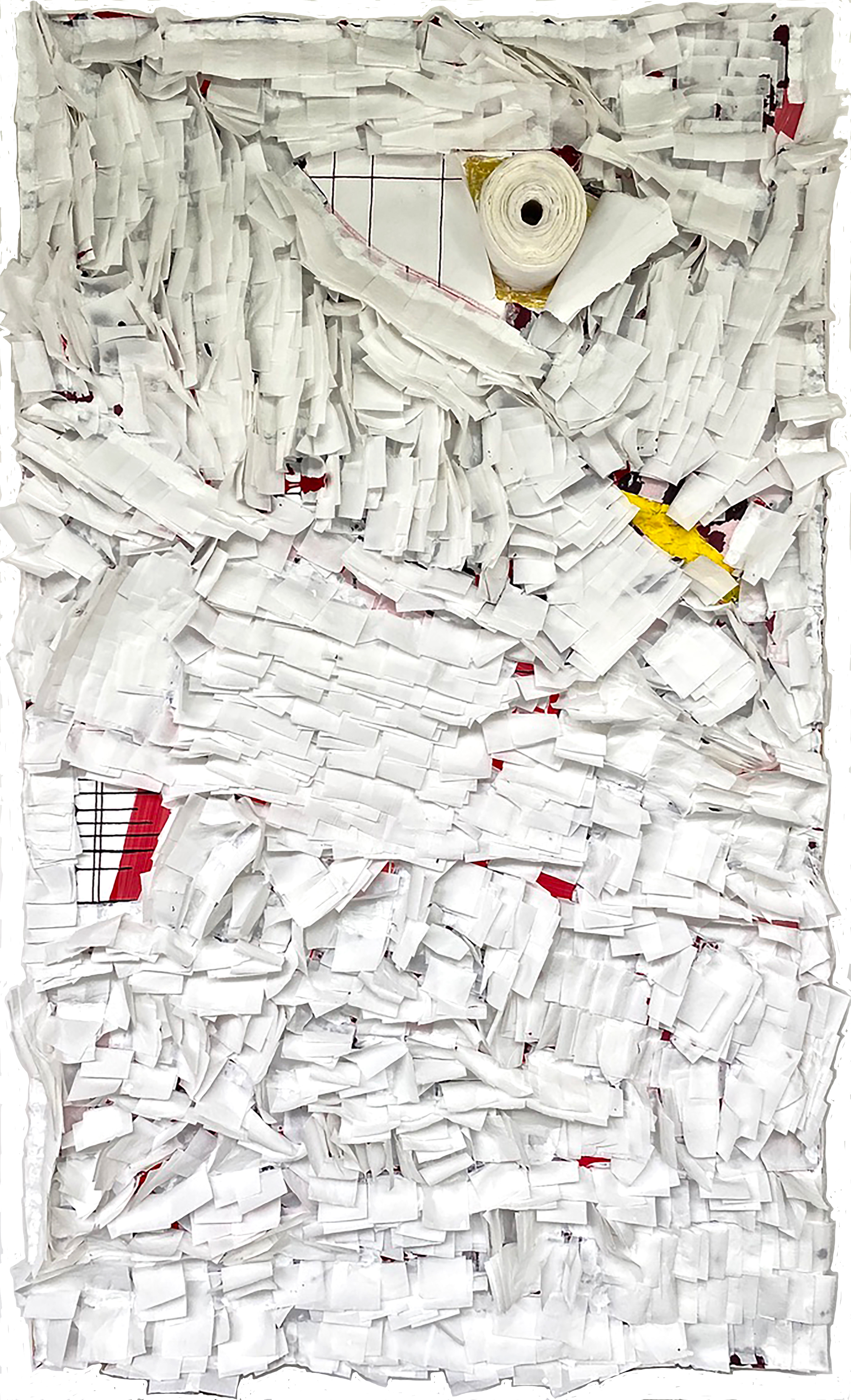 Thanks but I’ve got my own – a selection of towers, toilet paper, acrylic. (2021-2023)
